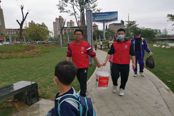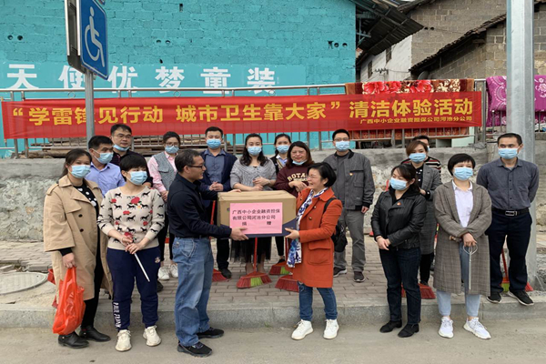 河池分公司組織志愿者到金城江街道體育館至維六村委一帶街道進(jìn)行大清掃。勞動(dòng)結(jié)束后,分公司向當(dāng)?shù)丨h(huán)衛(wèi)站捐贈(zèng)口罩2000個(gè),向環(huán)衛(wèi)一線人員致敬。